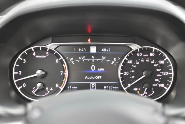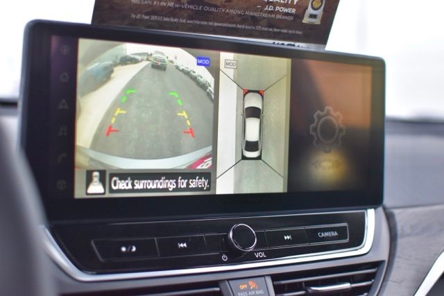 4-Wheel Disc Brakes, 9 Speakers, ABS brakes, Air Conditioning, Alloy wheels, AM/FM radio: SiriusXM, Auto High-beam Headlights, Automatic temperature control, Blind Spot Warning, Brake assist, Bumpers: body-color, Compass, Delay-off headlights, Driver door bin, Driver vanity mirror, Dual front impact airbags, Dual front side impact airbags, Electronic Stability Control, Emergency communication system: NissanConnect Services, Four wheel independent suspension, Front anti-roll bar, Front Bucket Seats, Front Center Armrest, Front dual zone A/C, Front reading lights, Fully automatic headlights, Heated Front Bucket Seats, Heated front seats, Heated steering wheel, Illuminated entry, Knee airbag, Leather Shift Knob, Leather-Appointed Seat Trim, Low tire pressure warning, Navigation System, NissanConnect featuring Apple CarPlay and Android Auto, Occupant sensing airbag, Outside temperature display, Overhead airbag, Overhead console, Panic alarm, Passenger door bin, Passenger vanity mirror, Power door mirrors, Power driver seat, Power moonroof, Power passenger seat, Power steering, Power windows, Radio data system, Radio: AM/FM w/Bose Premium Sound System, Rear anti-roll bar, Rear Parking Sensors, Rear reading lights, Rear seat center armrest, Rear side impact airbag, Rear window defroster, Remote keyless entry, Security system, Speed control, Speed-sensing steering, Speed-Sensitive Wipers, Split folding rear seat, Steering wheel mounted audio controls, Tachometer, Telescoping steering wheel, Tilt steering wheel, Traction control, Trip computer, Turn signal indicator mirrors, Variably intermittent wipers, and Wheels: 19 Unique Machined Alloy.