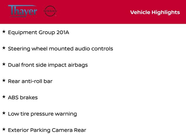 ABS brakes, Dual front side impact airbags, Equipment Group 201A, Exterior Parking Camera Rear, Low tire pressure warning, Rear anti-roll bar, Steering wheel mounted audio controls.