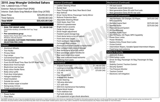 Unlimited Sahara 4D Sport Utility 4WD SUV #1J4BA5H10AL177920
