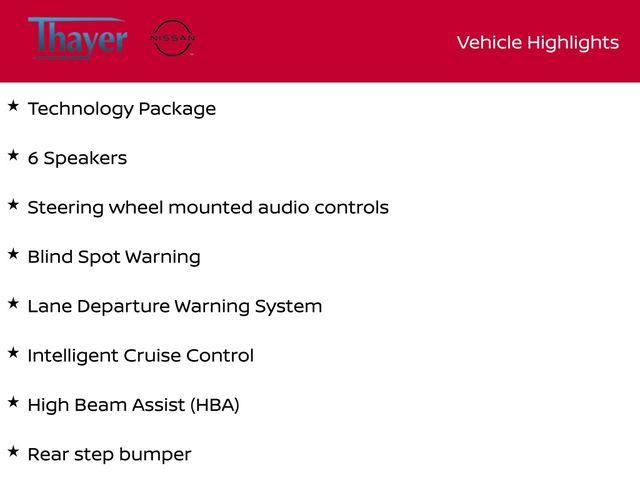6 Speakers, Apple CarPlay/Android Auto, Blind Spot Warning, High Beam Assist (HBA), Intelligent Cruise Control, Lane Departure Warning System, Rear Automatic Braking (RAB), Rear Cross Traffic Alert (RCTA), Rear Sonar System, Rear step bumper, Steering wheel mounted audio controls, Technology Package.