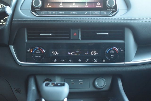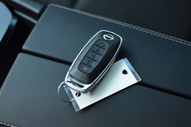 Cold Weather Package, 4-Wheel Disc Brakes, 6 Speakers, ABS brakes, Air Conditioning, Alloy wheels, AM/FM radio, Apple CarPlay/Android Auto, Auto High-beam Headlights, Automatic temperature control, Black Splash Guards (set of 4), Brake assist, Bumpers: body-color, Chrome Rear Bumper Protector, Cloth Seat Trim with Patterned Inserts, Delay-off headlights, Driver door bin, Driver vanity mirror, Dual front impact airbags, Dual front side impact airbags, Electronic Stability Control, Emergency communication system: NissanConnect Services, Floor Mats with 1-Piece Cargo Area Protector, Four wheel independent suspension, Front anti-roll bar, Front Bucket Seats, Front Center Armrest, Front dual zone A/C, Front reading lights, Fully automatic headlights, Heated door mirrors, Illuminated entry, Knee airbag, Low tire pressure warning, Occupant sensing airbag, Outside temperature display, Overhead airbag, Overhead console, Panic alarm, Passenger door bin, Passenger vanity mirror, Power door mirrors, Power driver seat, Power Liftgate, Power steering, Power windows, Premium Paint, Radio data system, Radio: AM/FM NissanConnect, Rear anti-roll bar, Rear seat center armrest, Rear side impact airbag, Rear window defroster, Rear window wiper, Remote keyless entry, Speed control, Speed-sensing steering, Speed-Sensitive Wipers, Split folding rear seat, Spoiler, Steering wheel mounted audio controls, Tachometer, Telescoping steering wheel, Tilt steering wheel, Traction control, Trip computer, USB Charging Cable Set, and Variably intermittent wipers.